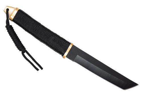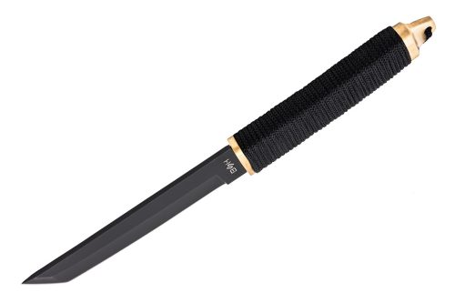 Namesto klasičnega ročaja je uporabljen vrvni ovitek (braid), ki omogoča dober oprijem in hkrati zmanjšuje težo noža.